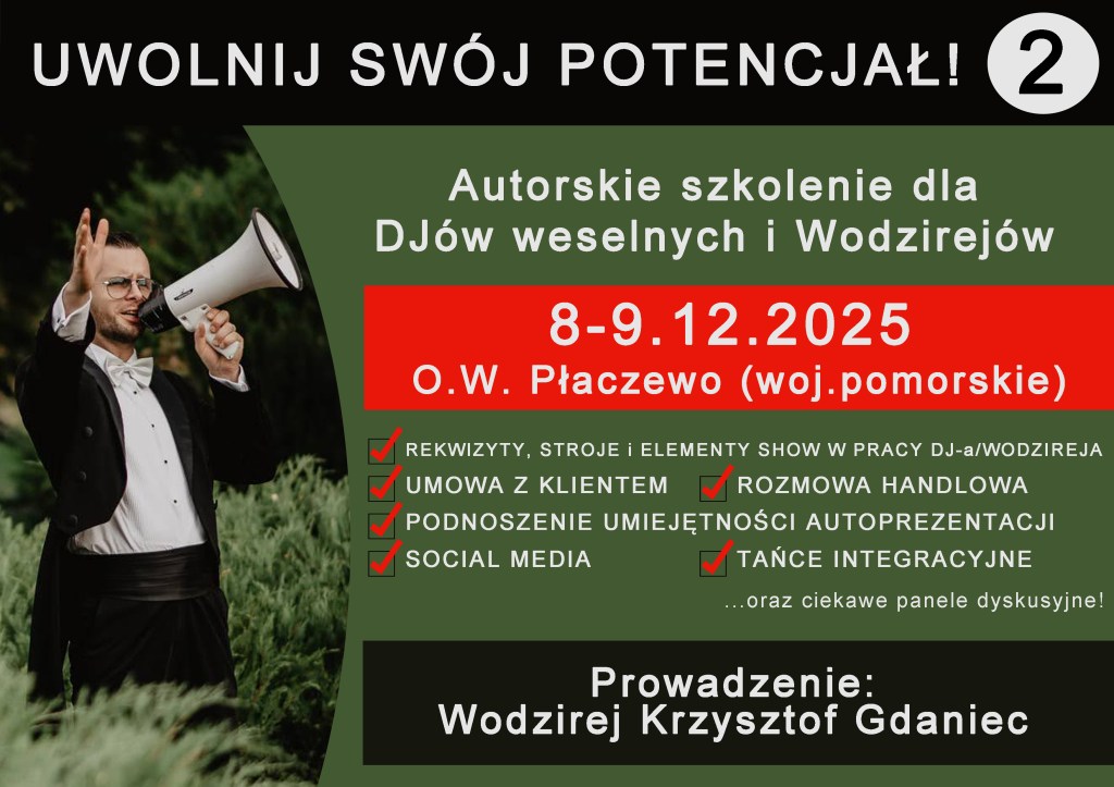 – rekwizyty i stroje dla DJ’a weselnego / Wodzireja – czy są potrzebne? Czy pomagają być lepszym w swojej pracy? Przedstawię swój punkt widzenia oraz zachęcę do dyskusji